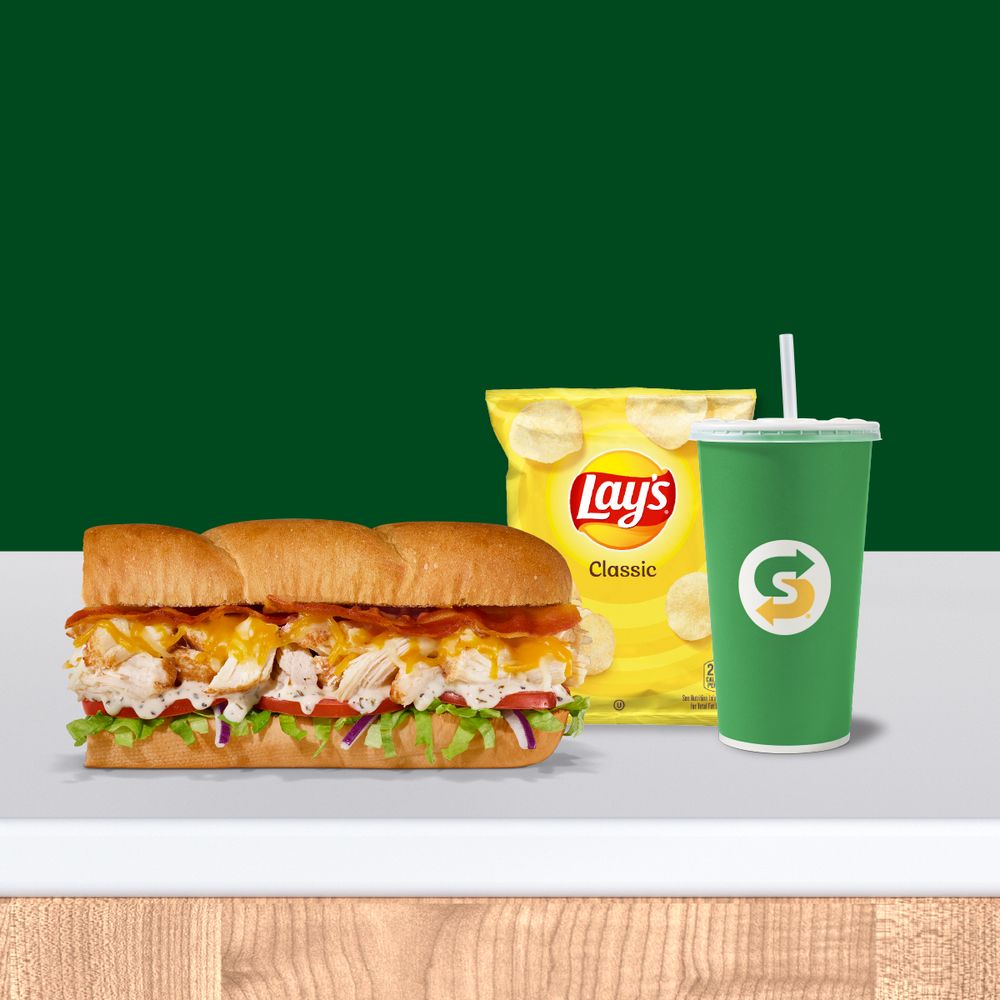 Treat yourself royally with our Elite Chicken & Bacon Ranch sub. Combining tender rotisserie-style chicken, 2x melted Monterey cheddar cheese, hickory-smoked bacon, lettuce, tomatoes, red onions, and our creamy Peppercorn Ranch all on Artisan Italian bread. Includes sandwich, side, and drink of your choice.